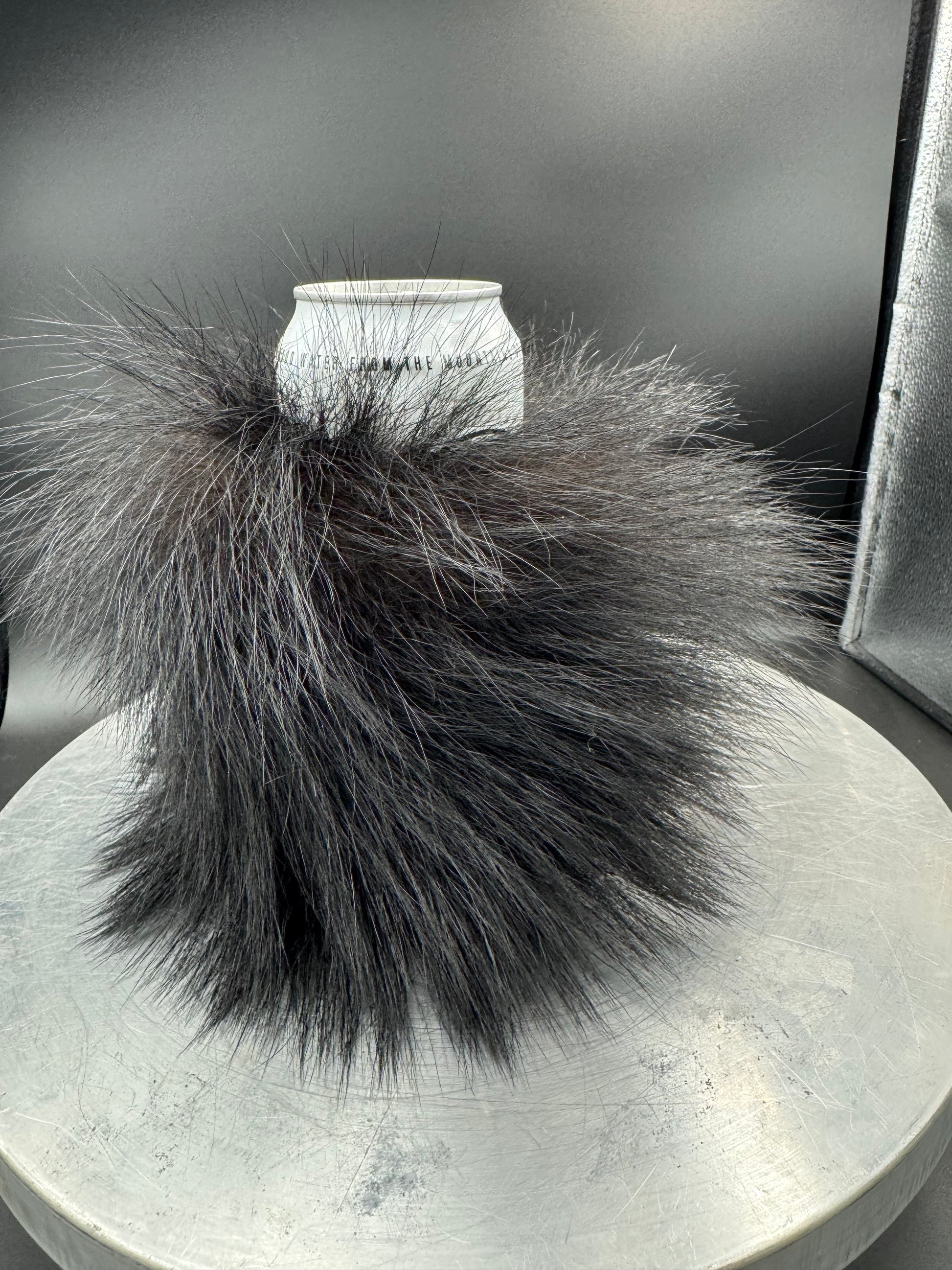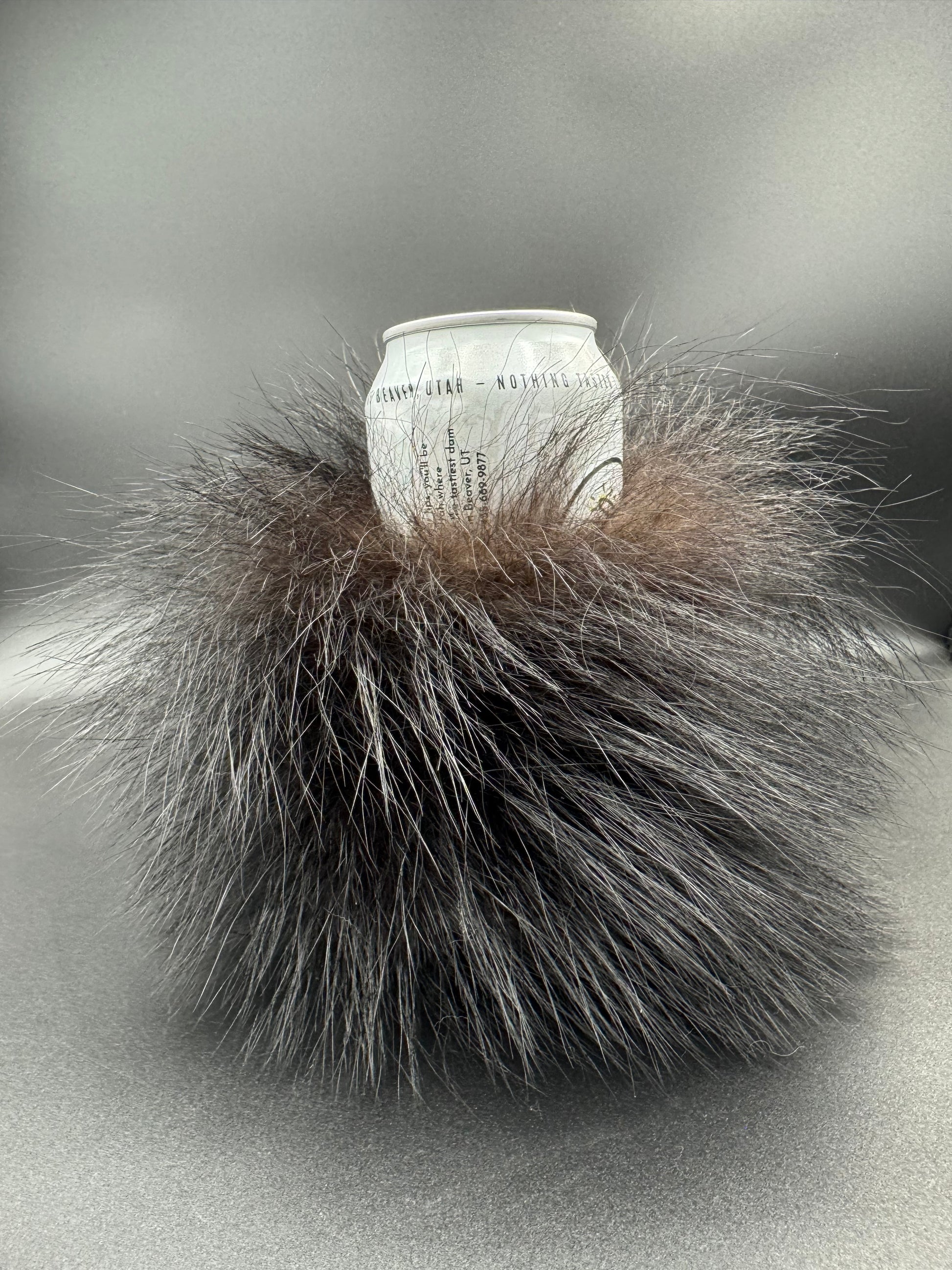 The best way to keep your drink cold is with nature's best insulation- black bear fur! This item is sure to be a statement piece while also keeping your drink cold, and your hand warm. These are sized to fit all regular cans but work best with taller cans or bottles as the black bear fur is long enough to tickle your nose!